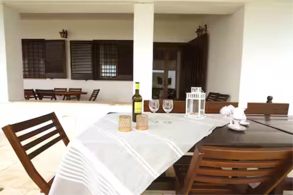 comoda cucina e la dotazione di doppi spazi esterni per cenare all’aperto, quali la