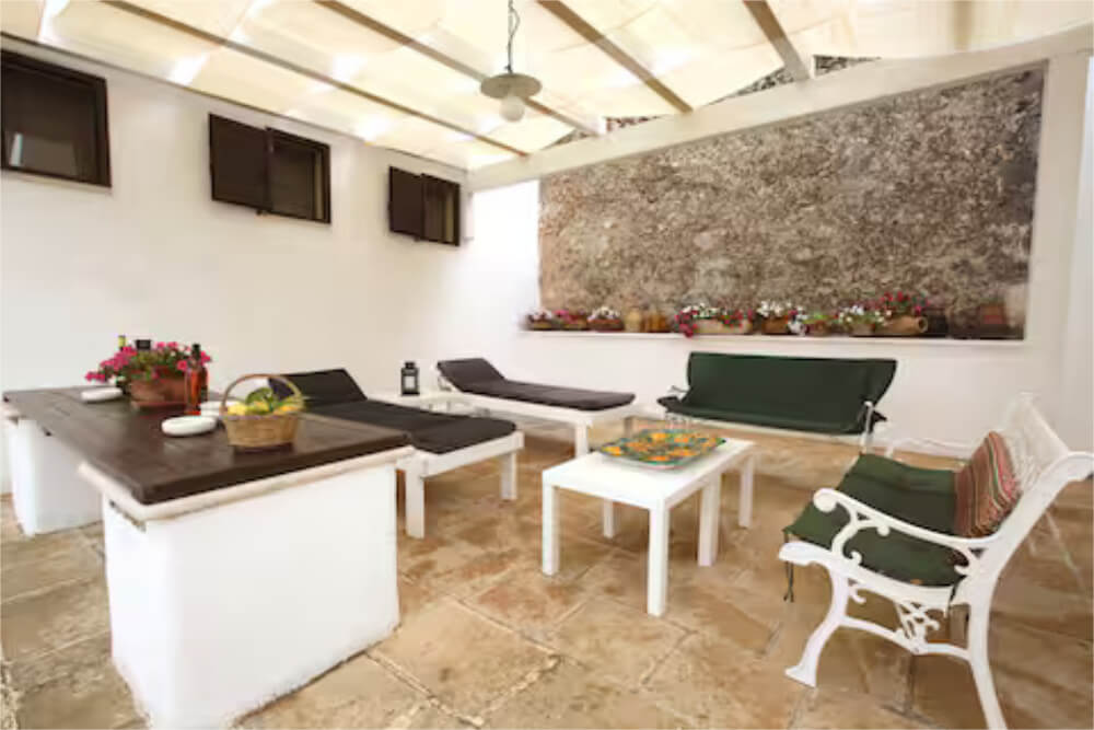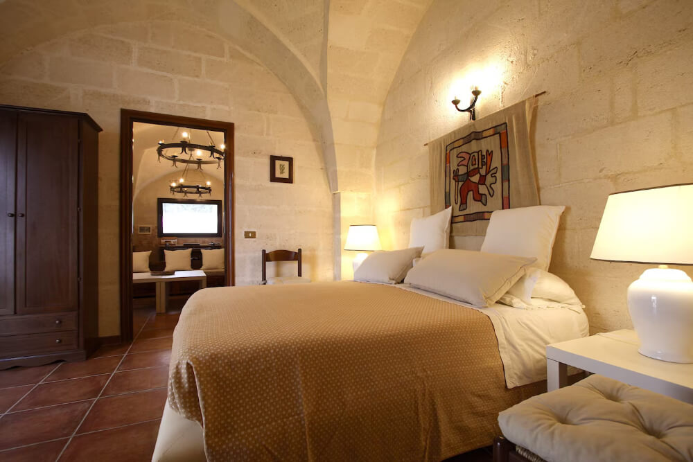 In Antica Masseria disponiamo di quattro spaziosi appartamenti dotati di ogni confort. Tutti gli alloggi sono arredati con gusto ed eleganza, con mobili in legno massello e ferro battuto. Gli appartamenti hanno ingresso indipendente con accesso dalla corte interna. All'esterno, il prato all'inglese è arredato con tavoli, sedie, lettini e ombrelloni, di pertinenza di ciascun appartamento.