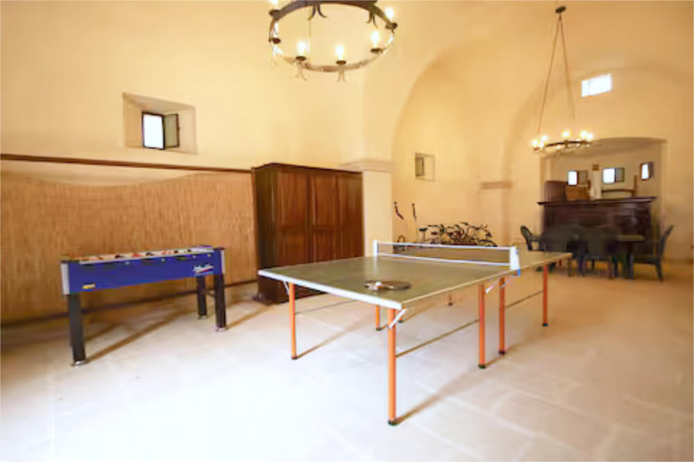 oltre ad una sala giochi per grandi e piccini e l'immancabile "Area Barbecue".