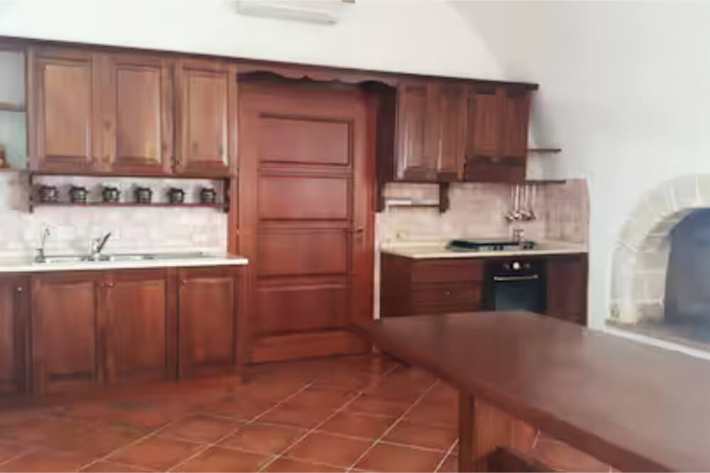 La casa vacanza "Le Stalle" completa la "costellazione" degli alloggi destinati agli allevamenti della Masseria. Le Stalle infatti sono state ricavate da ricoveri a suo tempo destinati ai cavalli ed alle mucche che fino agli anni '50 praticavano la "transumanza", discendendo in primavera dalle alture della Valle d'Itria verso i pascoli pianeggianti delle campagne costiere. Molto suggestiva e fresca a causa dello spessore delle sue pareti, ricavata e ristrutturata dalle "antiche mangiatoie del Castello", con presenza di antichi soffitti realizzati nella tipica "forma a botte", le cornici in pietra delle volte, i grandi camini tipici all'uso dei "Massari" al cui interno venivano cotte pietanze ed affumicati i salumi mentre in estate usati come fresche dispense di stoccaggio per la stagionatura di formaggi ed insaccati. Un "passaggio segreto" comunicava questo alloggio con le sale del Castello.